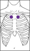 Located off the breastbone, in the hollow below the collarbone. There may be a slight indentation.
