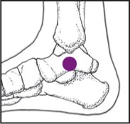 In the small indentation approximately 1 inch directly below the inside ankle bone.